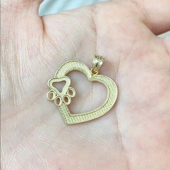 Solid 10k Yellow Gold Heart Paw Print Pendant Necklace 16" 18" 20" 22"