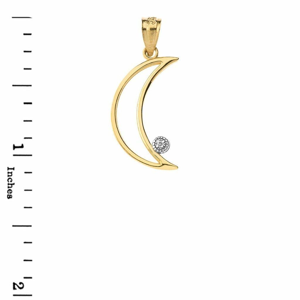 Solid 10k or 14k Yellow White Rose Gold Diamond Crescent Moon Arc-Shaped Outline Openwork Pendant Necklace