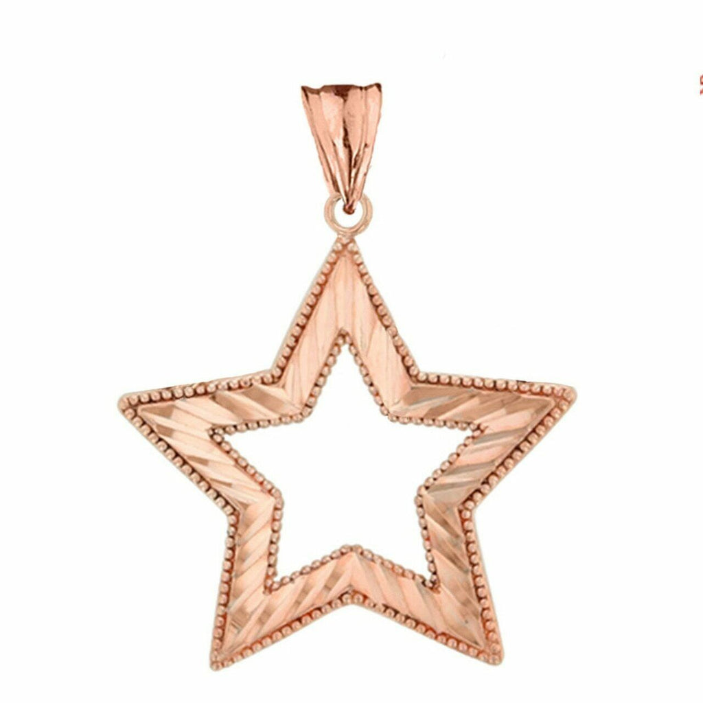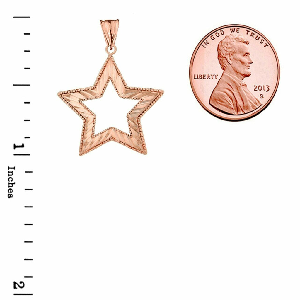 Solid 14k Rose Gold Chic Sparkle Cut Star Pendant Necklace