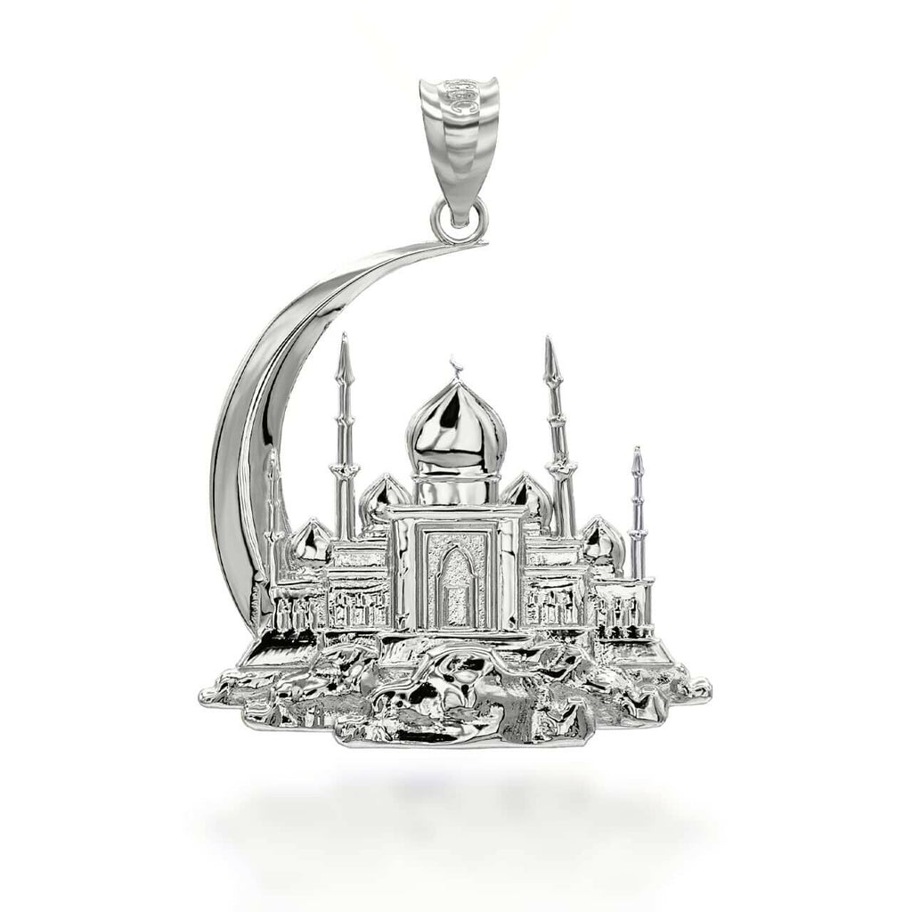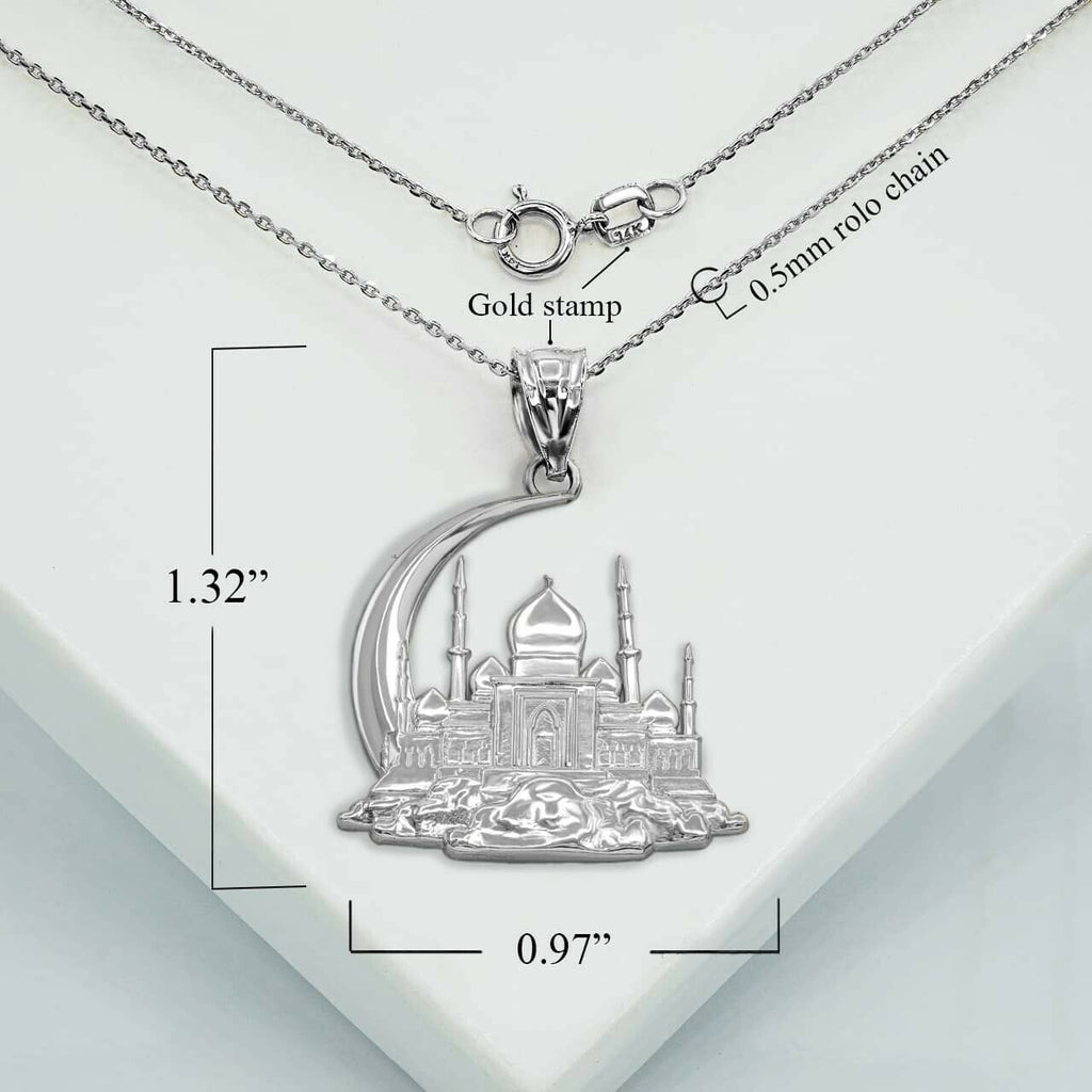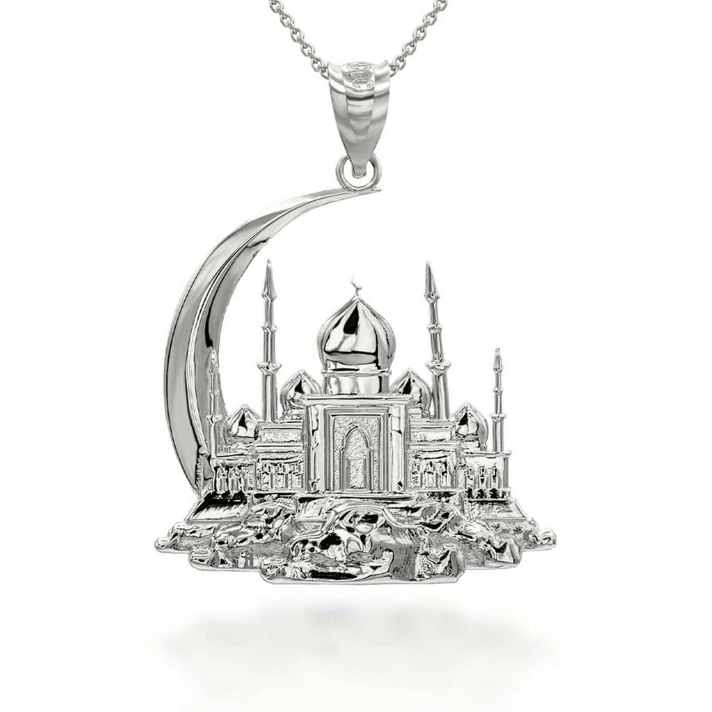 Sterling Silver Islamic Crescent Moon Hilal Ibn Ali Mosque Pendant Necklace