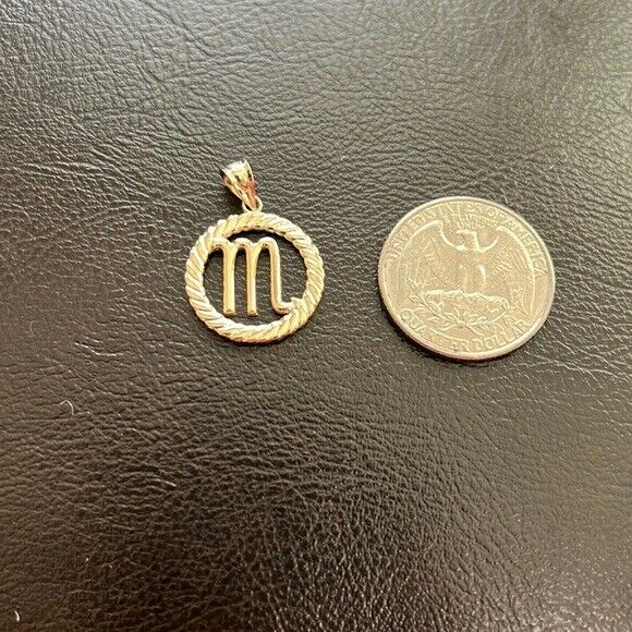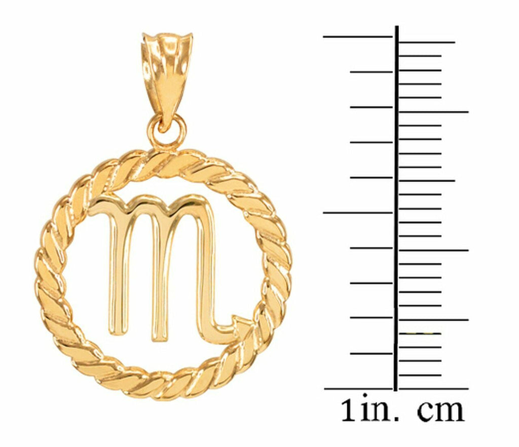 14K Solid Gold Scorpio Zodiac Sign in Circle Rope Pendant Necklace