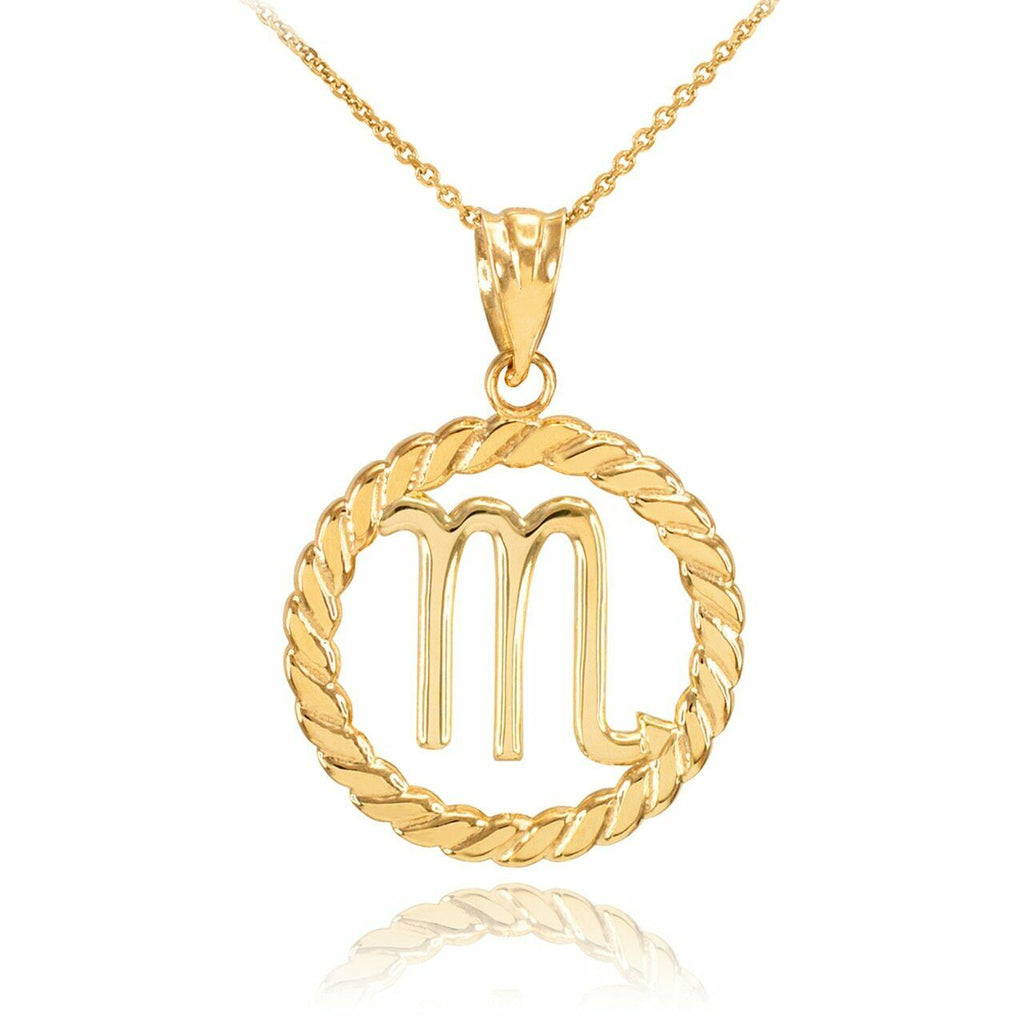14k Gold Scorpio Zodiac Sign in Circle RopePendant Necklace |