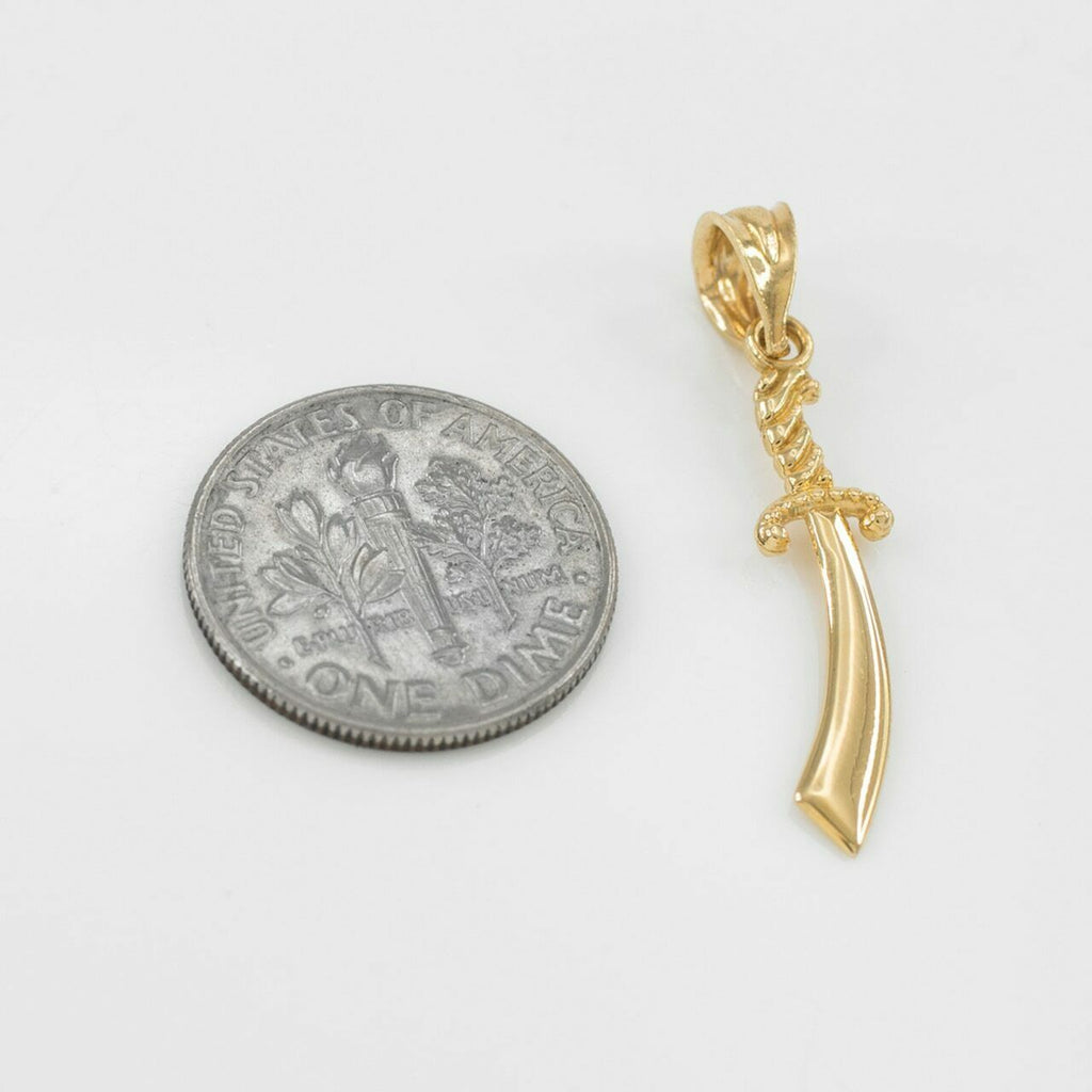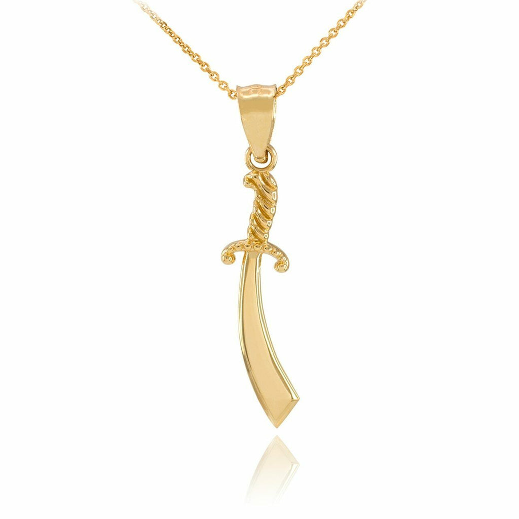 Solid 10k Yellow Gold Scimitar Sword Pendant Necklace |