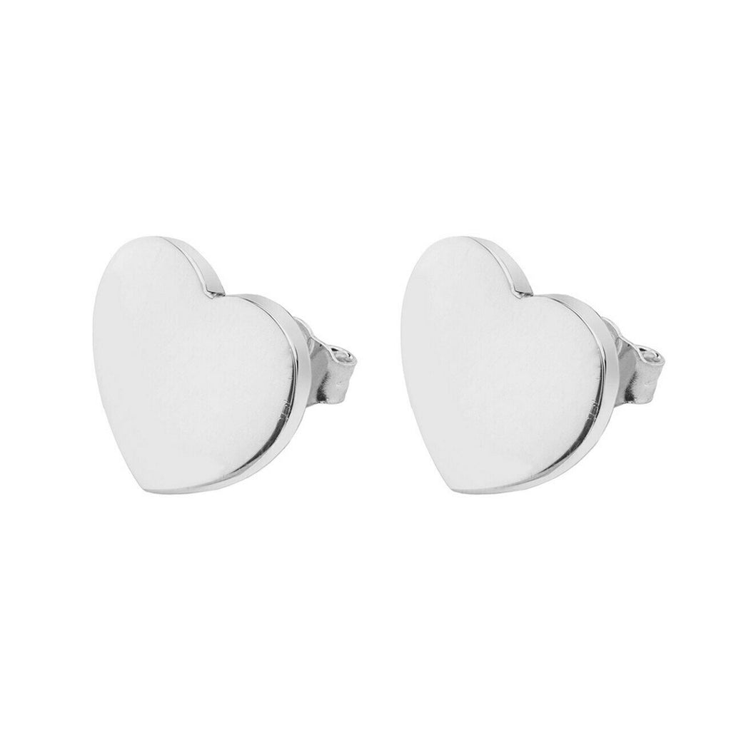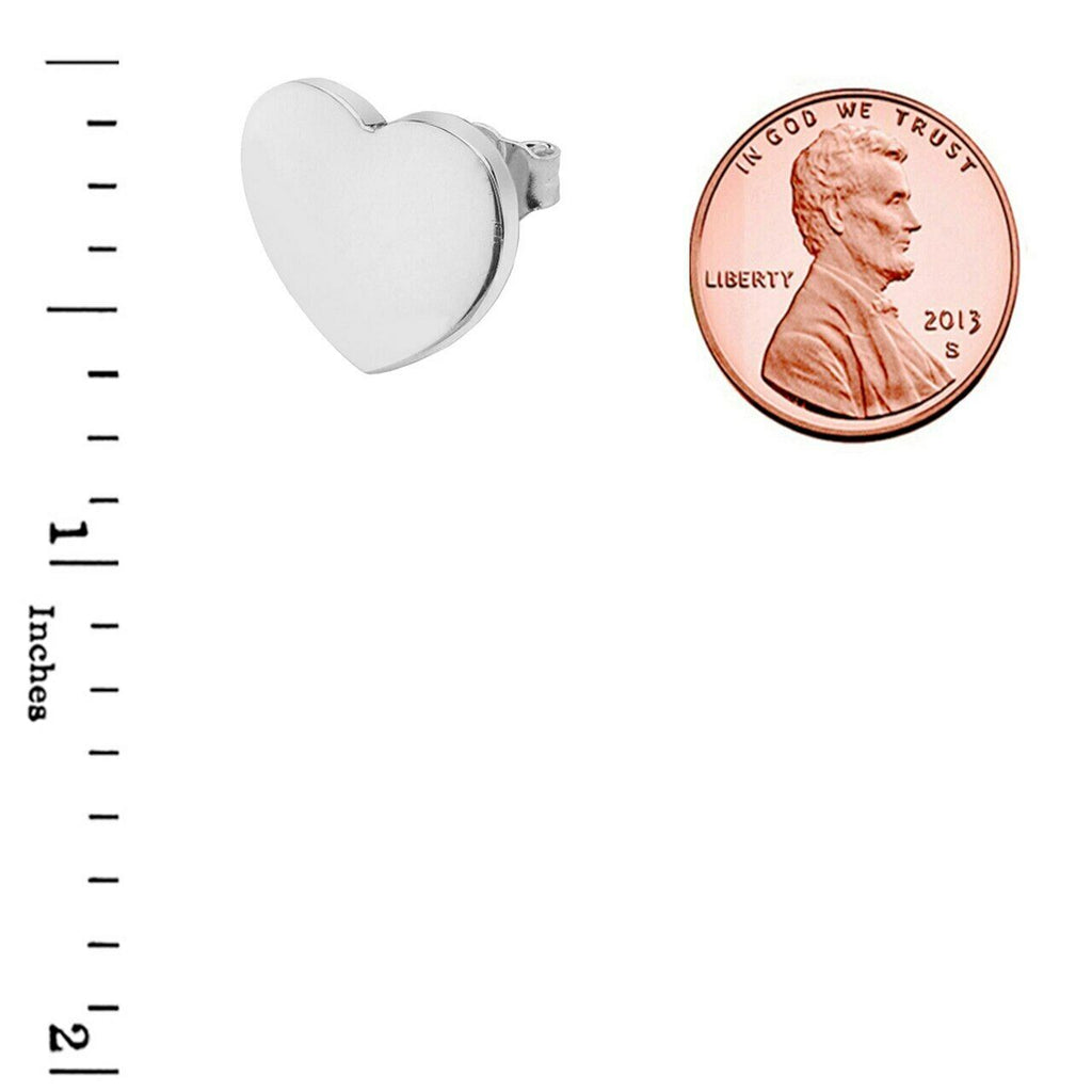 14k Solid White Gold Plain Simple Small Heart Stud Earrings