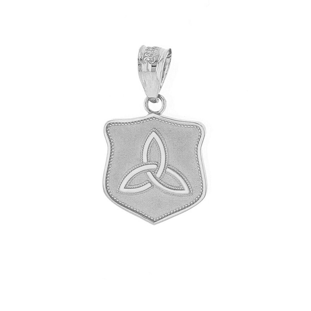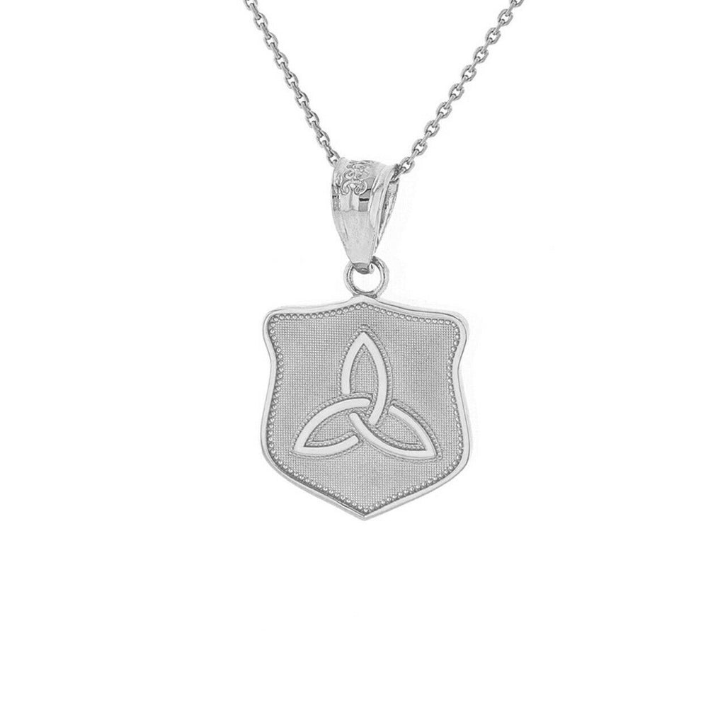 .925 Sterling Silver Trinity Shield Triquetra Celtic Knot Pendant Necklace