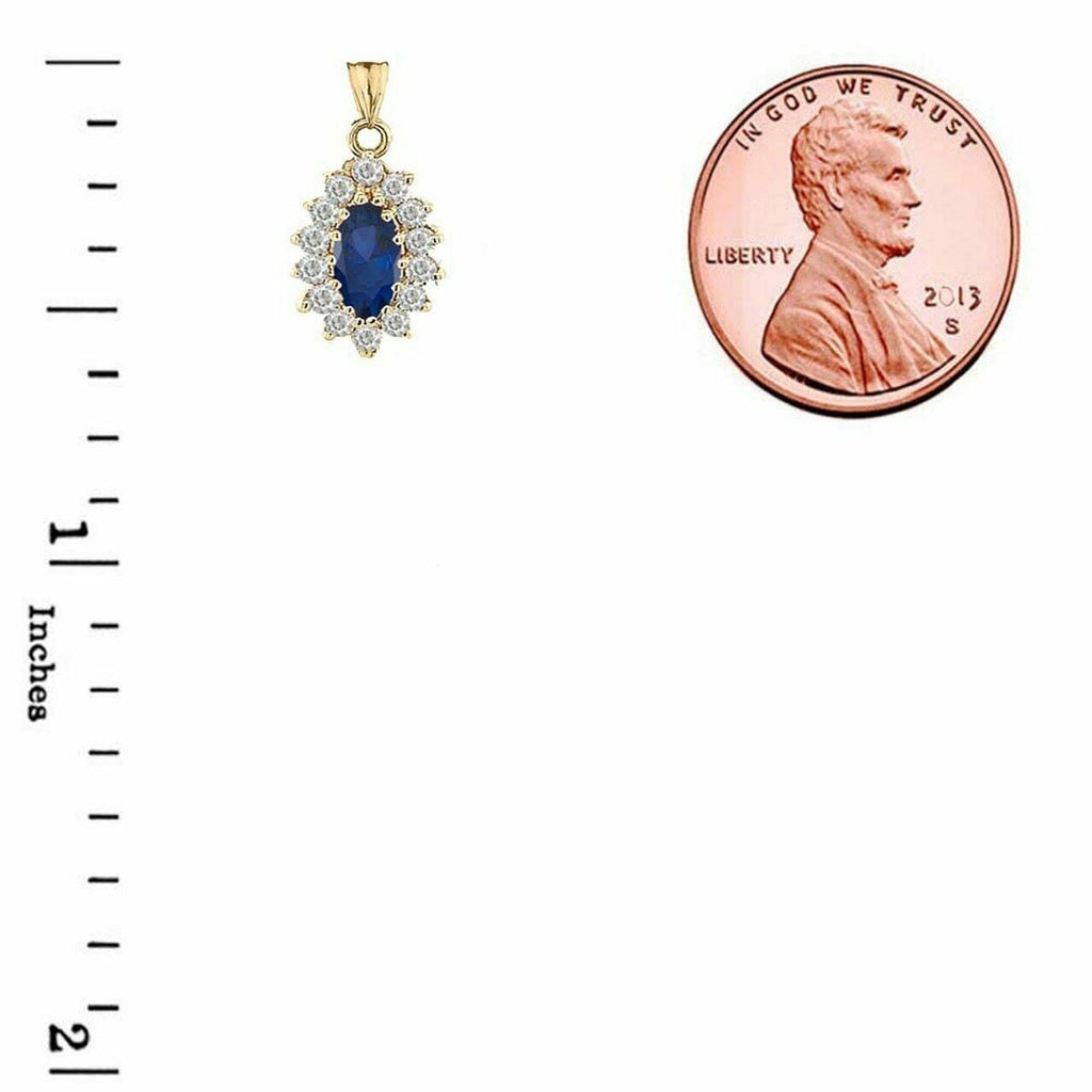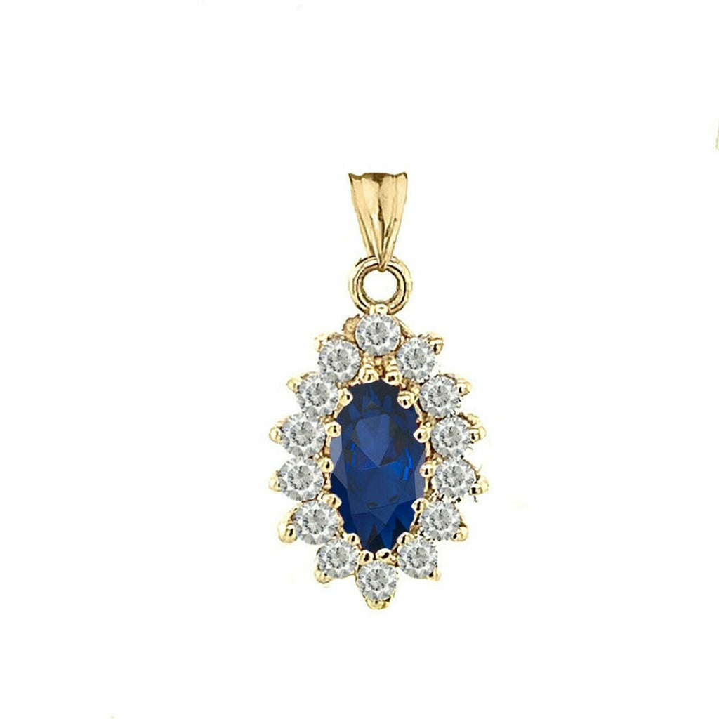 Solid Gold Genuine Sapp Marquise-Shaped Fancy Pendant Necklace White Yellow Rose